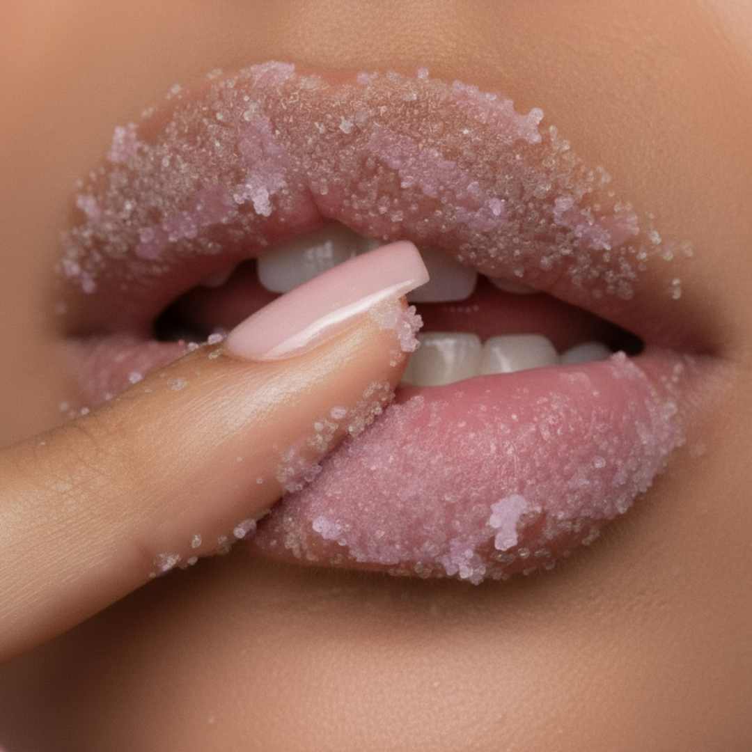 حبّات السكر الناعمة تزيل الجفاف والخشونة بلطف، وتخلّي الشفايف ناعمة وملساء. تجهّز شفايفك بشكل مثالي عشان الروج أو البلسم يطلع متساوي ويعطي شكل أحلى.