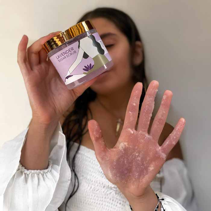 لا يعمل مقشر السكر باللافندرعلى تعزيز تحسين البشرة فحسب، بل يعمل أيضًا كعامل عقلي مهدئ. بالإضافة إلى ذلك، فهو يعمل على تنسيق حاجز الرطوبة لبشرتك، ويمنع الزيوت الزائدة أو الجفاف.