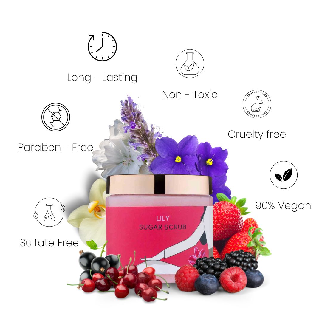 جربي اللمسة اللطيفة لمقشر سكر الزنبق 500 غرام. استمتعي بالرائحة الحلوة والناعمة التي تدوم على بشرتك، وتتركها منتعشة وناعمة.